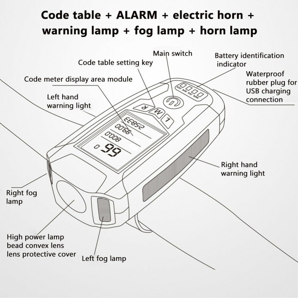 • USB Rechargeable: The LED Bicycle Headlight with Horn is equipped with a USB rechargeable battery, allowing for convenient charging no matter where you are.